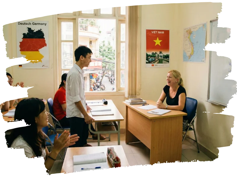 Tại Học Tiếng De, chúng tôi không chỉ dạy ngoại ngữ, chúng tôi kiến tạo tương lai. Với đội ngũ giảng viên chất lượng cao đạt chuẩn Châu Âu và lộ trình đào tạo bài bản, chúng tôi cam kết mang đến môi trường học tập tiếng Đức hiệu quả, rút ngắn 30% thời gian nhưng vẫn đảm bảo nền tảng kiến thức vững chắc.